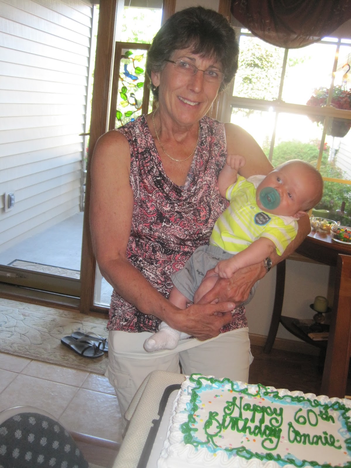 The last stop was the closest (and nearest and dearest to my heart I felt bad I couldn't get their sooner) was CHISAGO! My amazing Aunt Judy invited everyone to her home to be able to meet Declan, eat some excellent lasagna and sing some happy birthday with some dessert for my mom on her 60th birthday! The morning of my mom's birthday I took her out to breakfast and I ran into my high school golf coach. That was fun to see her and reminisce!